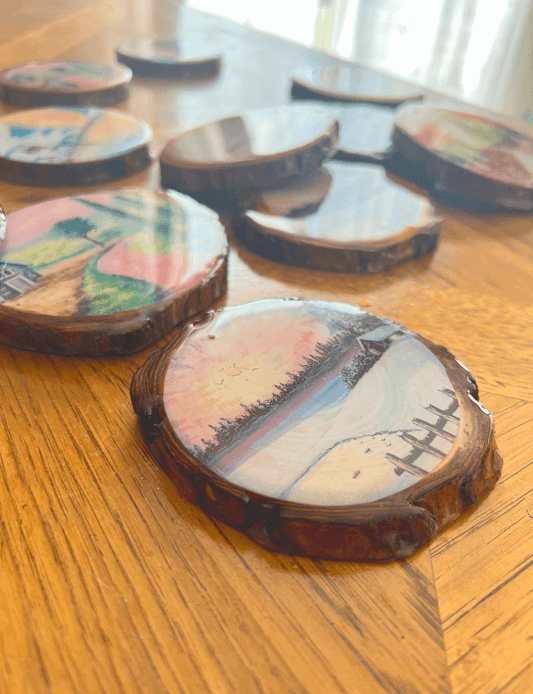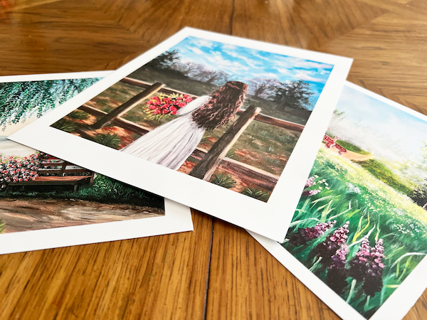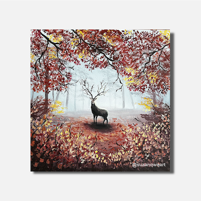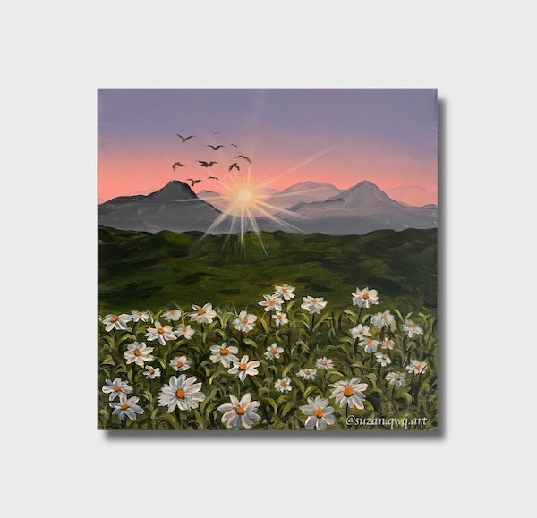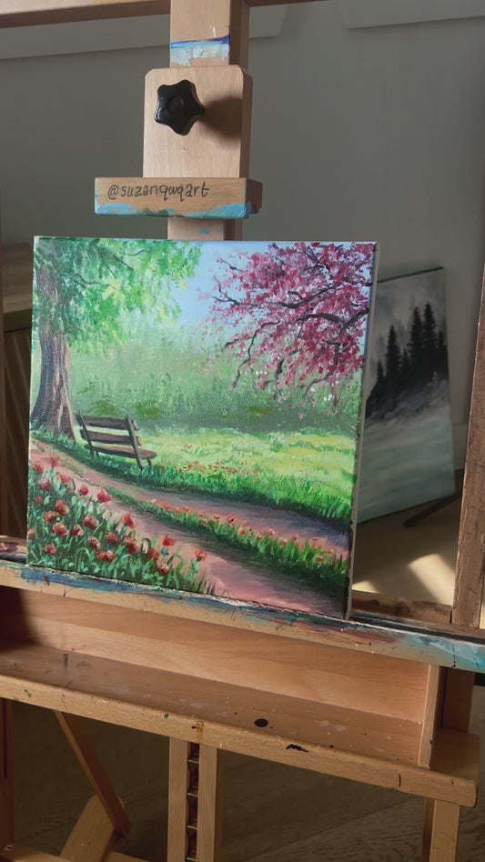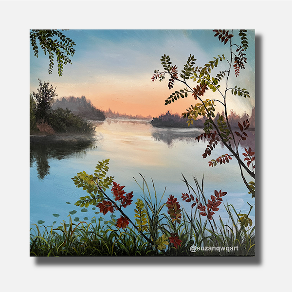 I paint landscapes and add elements of life for romantic vibes. I like to use soft colors to create calm and inviting atmospheres.