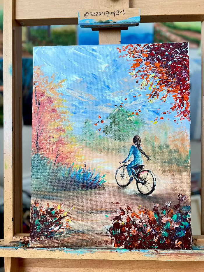 This is a 18”x14” abstract landscape painting. This painting has a touch of Fall warmth.